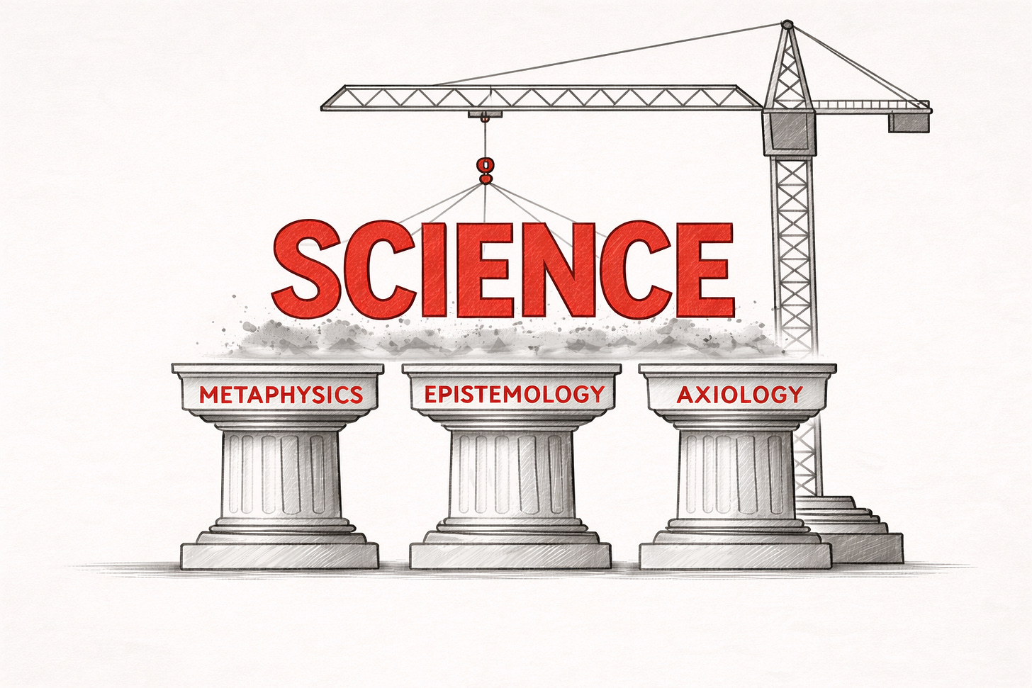 One theme here is that mental and behavioral forms of science are still in need of effective founding ideas from which to build. I’m going deeper now however to the founding of science as a whole, and specifically given that its function depends upon still speculative topics in philosophy. I’m referring to metaphysics (what exists), epistemology (how to understand), and axiology (the nature of value). The proposal is that a new specialization in philosophy must be developed which has the sole purpose of providing agreed upon principles from which to found science more effectively than past merely implicit rules so far. Then in my next three posts I’ll present a manifesto of my own for each branch. Let’s kick this off with some relevant history.